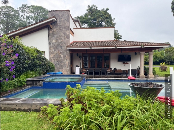 Con un gran espacio de jardín, alberca y jacuzzi, esta propiedad se distribuye en un solo nivel con 4 recámaras y un bungalow para visitas con 2 recámaras independientes.